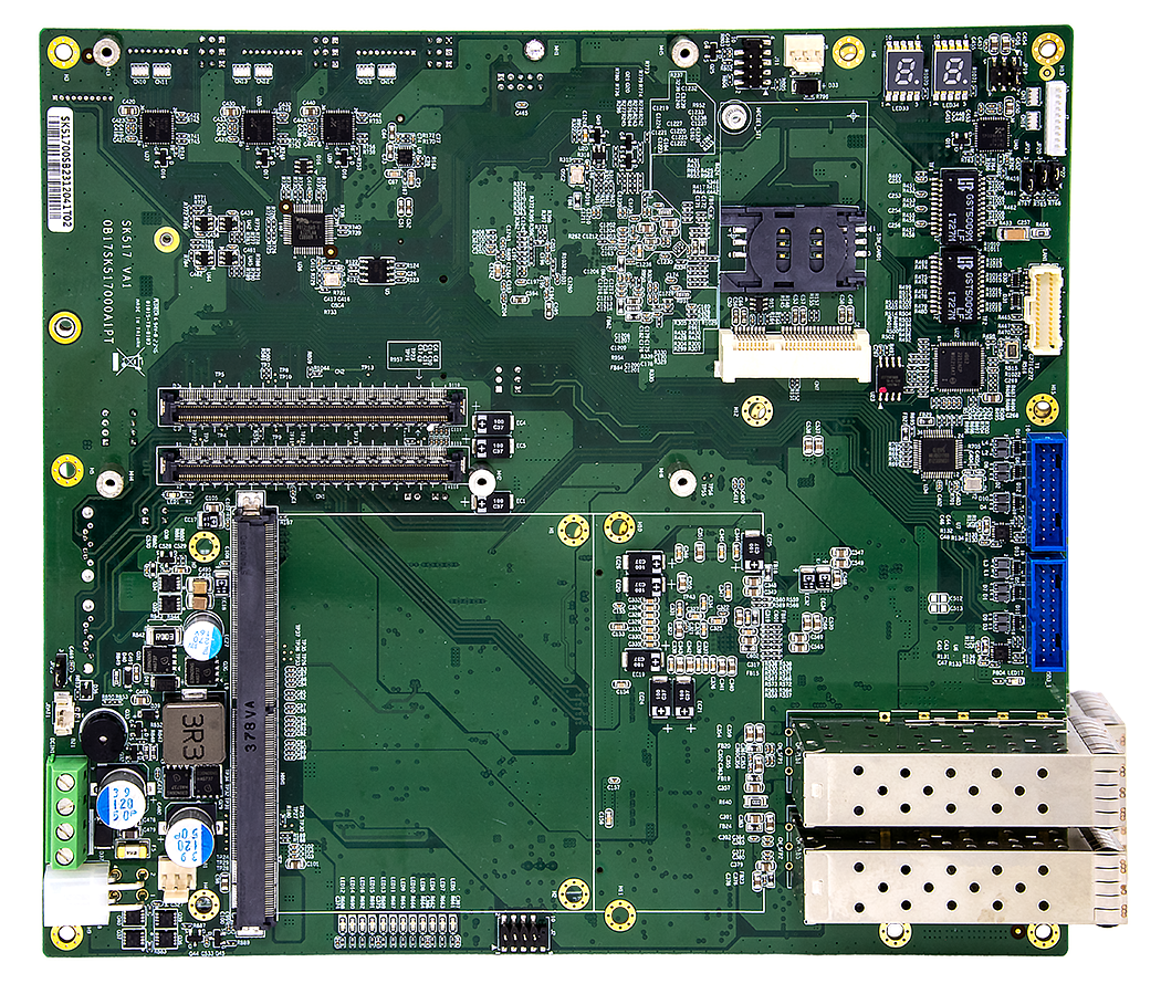 SK517 support a wide range of Intel processors, from Ice Lake D-LCC processors to Atom C3000 series, feature advanced hybrid architecture with Performance and Efficient cores for optimized power usage. What’s more, SK517 has the capability to operate in har sh environment. It accepts the extend range of temperature from -40 to 85°C. With outstanding computing capability and efficient thermal design, SK517 is very suitable for industrial, military/aerospace and transportation.