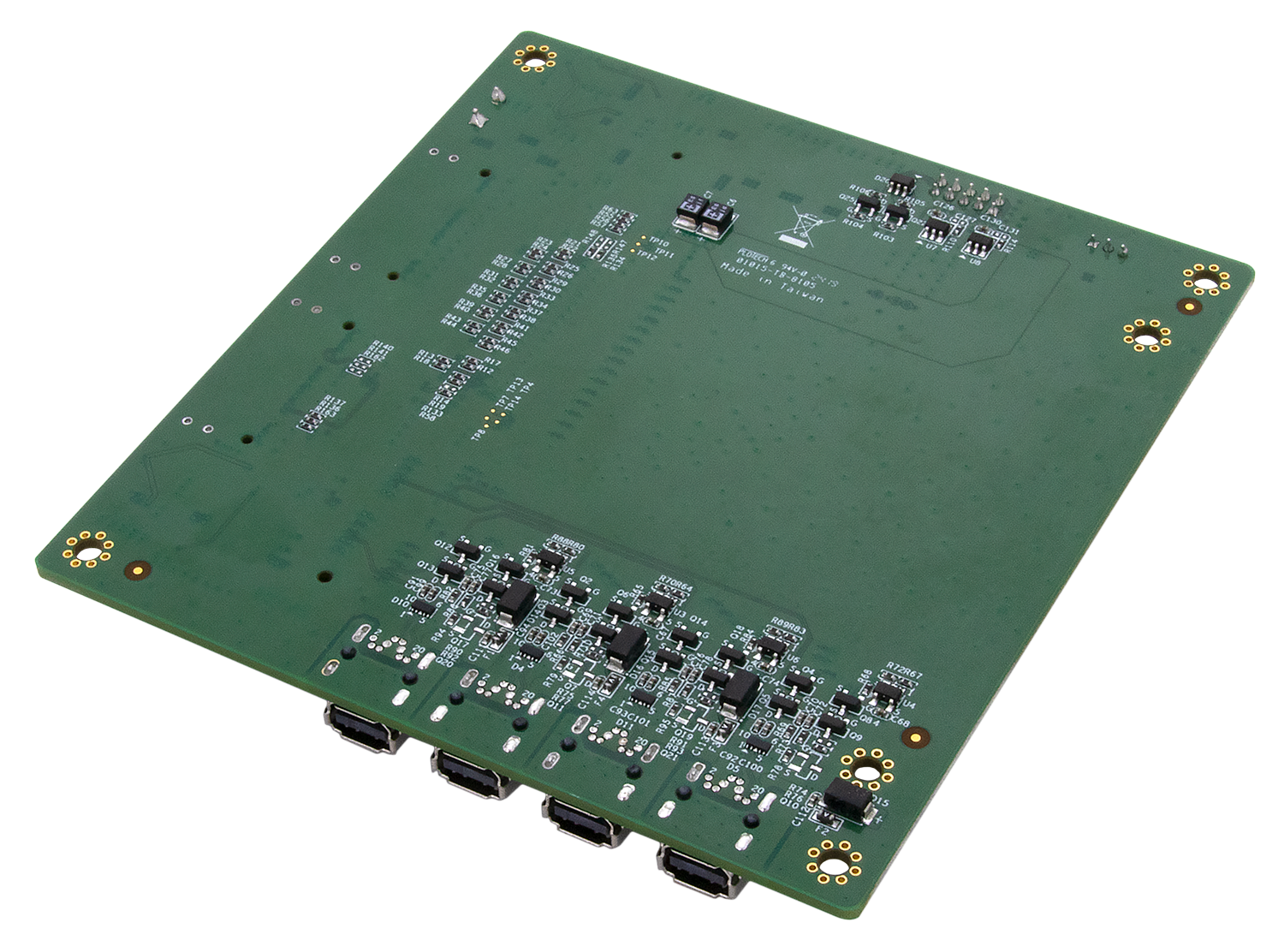 SK303 has four M i ni Display ports and one VGA port ; and 12V input for MXM, 5V for VGA, 3V for Fan.