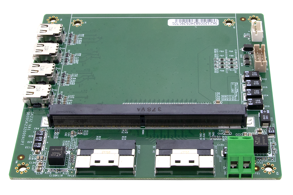 SK 232 , a SLimSAS x8 to MXM carrier board that is capable of bridging MXM interface to SlimSAS connector and it has been designed to withstand extended temperature from -40°C ~ 85°C.